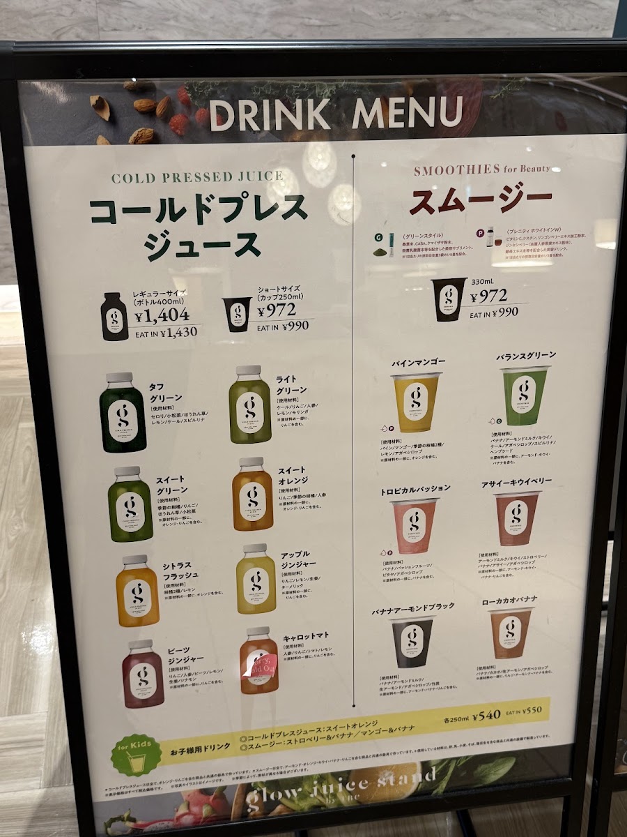 Introducing the menu at glow juice stand by TBC ARIAKE, a standout cafe and juice shop located in the heart of Ariake, Tokyo. This health-conscious haven offers a delicious array of vegan options, meticulously crafted with a focus on nutritional quality. The menu features an impressive selection of cold-pressed juices, smoothies, and nourishing bowls like the soy milk Greek yogurt bowl and the popular acai bowl. Made with frozen fruits, these options combine taste with health benefits, elevating your experience even amidst Japan's limited fresh fruit availability.